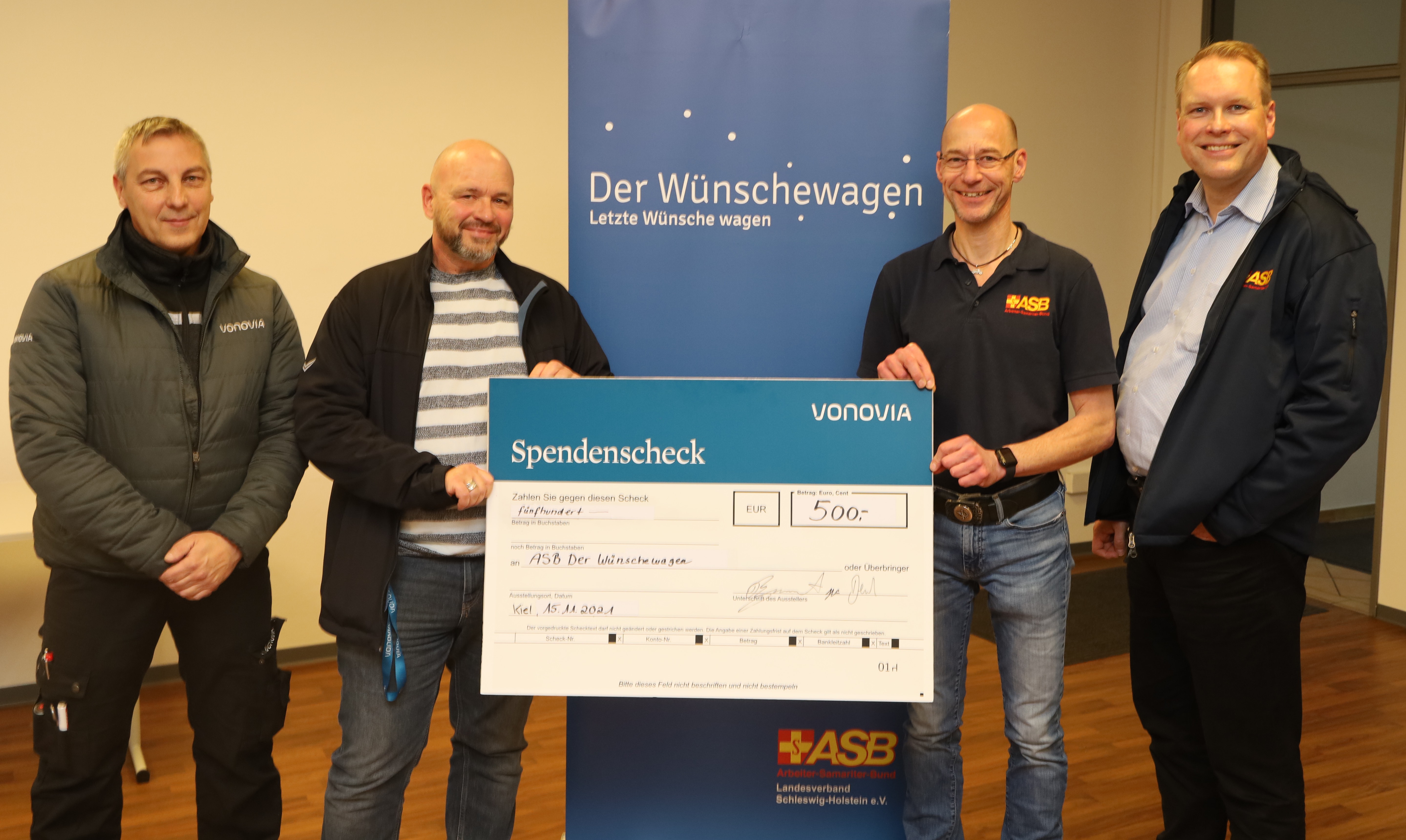 Es gibt viele sinn- und wertvolle soziale Projekte. Kaum eines geht jedoch so zu Herzen wie der Wünschewagen, mit dem der ASB schwerkranken Menschen hilft, letzte Träume zu verwirklichen. Genau aus diesem Grund hat das Kieler Team der Vonovia jetzt 500 Euro dafür gespendet.