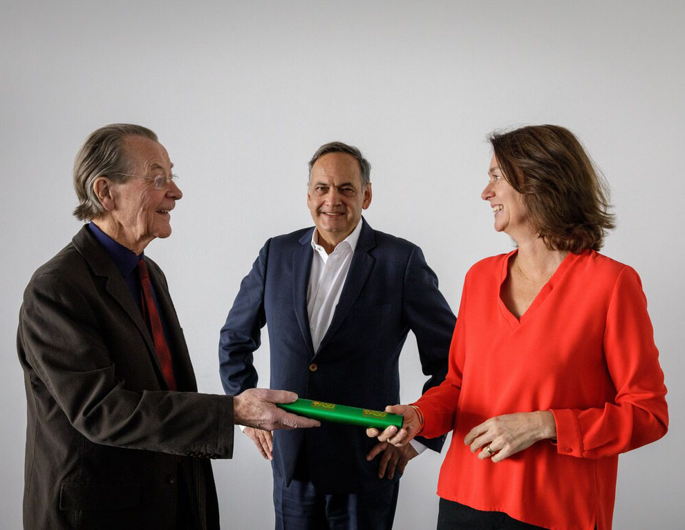 Franz Müntefering übergibt den Staffelstab an ASB-Präsidentin Katarina Barley. Im Hintergrund ASB-Bundesvorsitzender Knut Fleckenstein. Foto: Cordon Welters