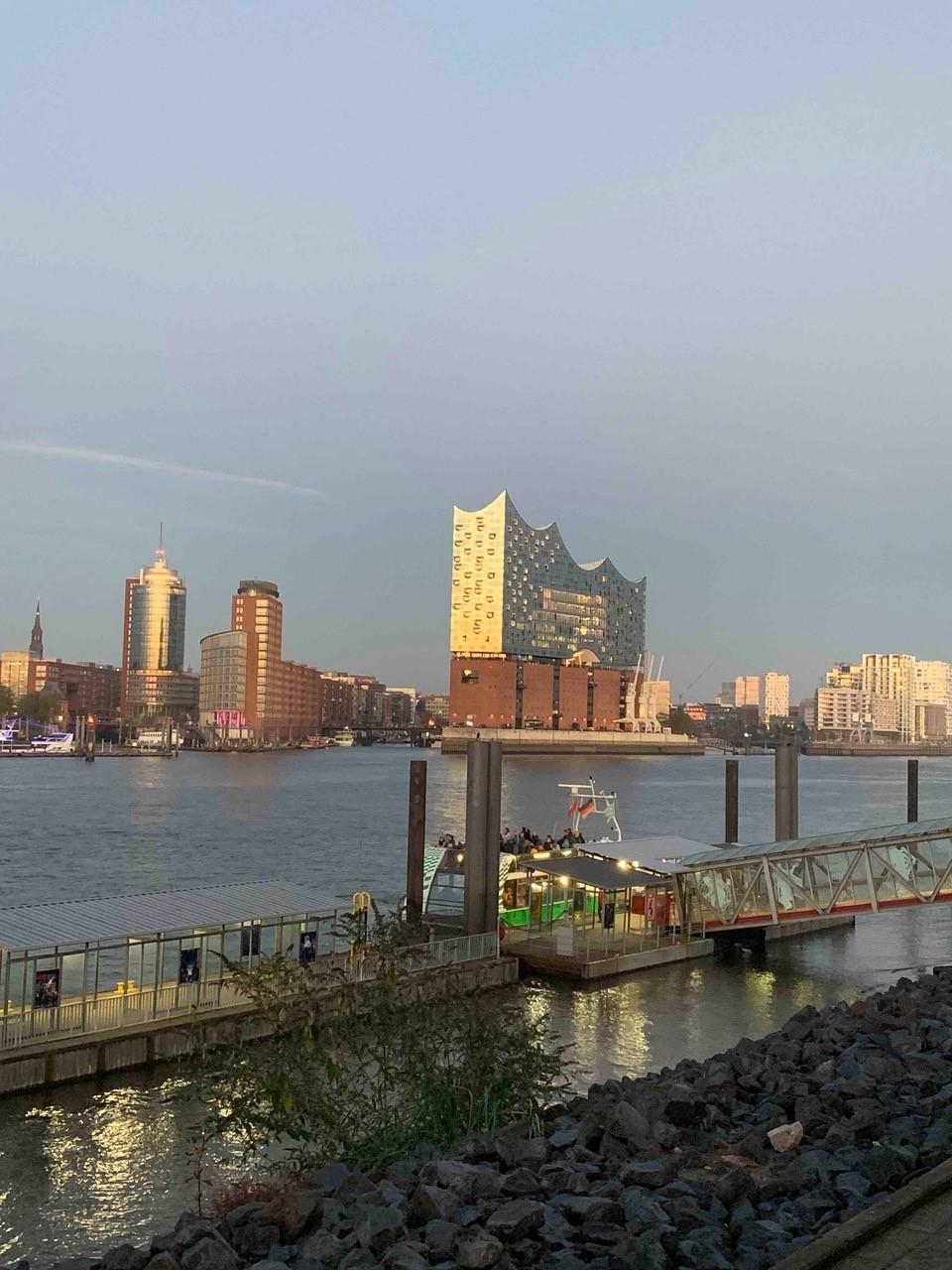 Nach dem letzten Vorhang sind wir alle vier begeistert von der Aufführung. Beim Verlassen des Theaters liegt die andere Elbseite im sanften Abendlicht. Wir genießen die Stimmung noch einen Moment, bevor sich Herr S. und seine Nichte verabschieden und wir den Rückweg antreten.