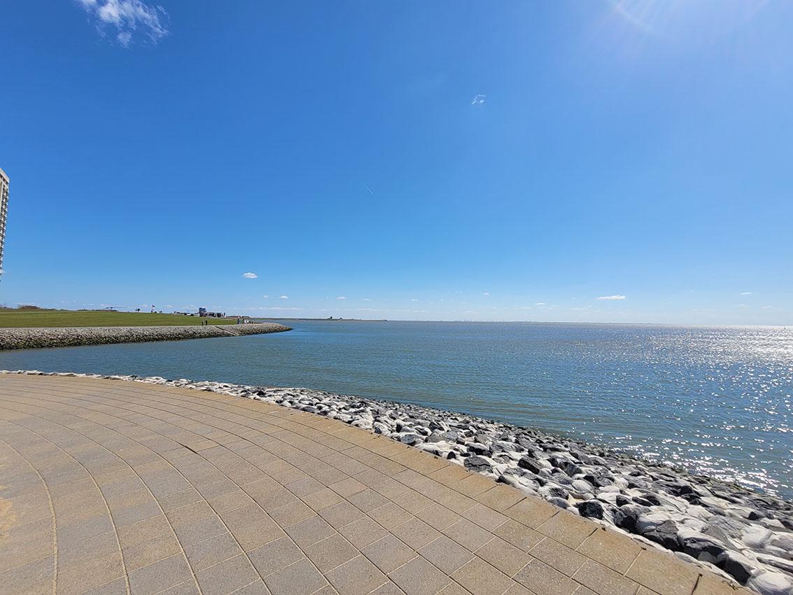 Also ging es los, den Hafen entlang mit den Kuttern, Werft und Fahrgastschiffen. Man konnte förmlich zusehen, wie Frau Wegener aufblühte, alles in sich aufsog, während es den Hafen entlang langsam Richtung Westmole ging. Dort angekommen nahmen sich unsere beiden Gäste viel Zeit, gemeinsam aufs Meer zu schauen, die Sonne und den frischen Wind zu genießen und für sich zu sein.