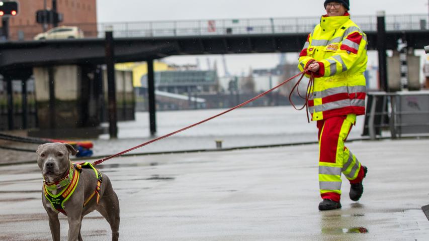 Sonntag morgen starteten wir in Hamburg City. Von der B4, über sämtliche Brücken, durch kleine Hinterhöfe gelangten die Hunde von A nach B. Weiter rein bis in die Speicherstadt, Hamburg Dungeon bis in die HafenCity und den Sandtorhafen an die Anleger. Dann vorbei an einem Boot, welches seeeehr interessant war. Die Brücke vom Anleger zum Boot war aber nicht ausgelegt, so musste man ein Stück aufs Boot springen. Einmal ums Eck auf dem Boot saß auch schon die versteckte Person! Vertrau Deinem Hund...