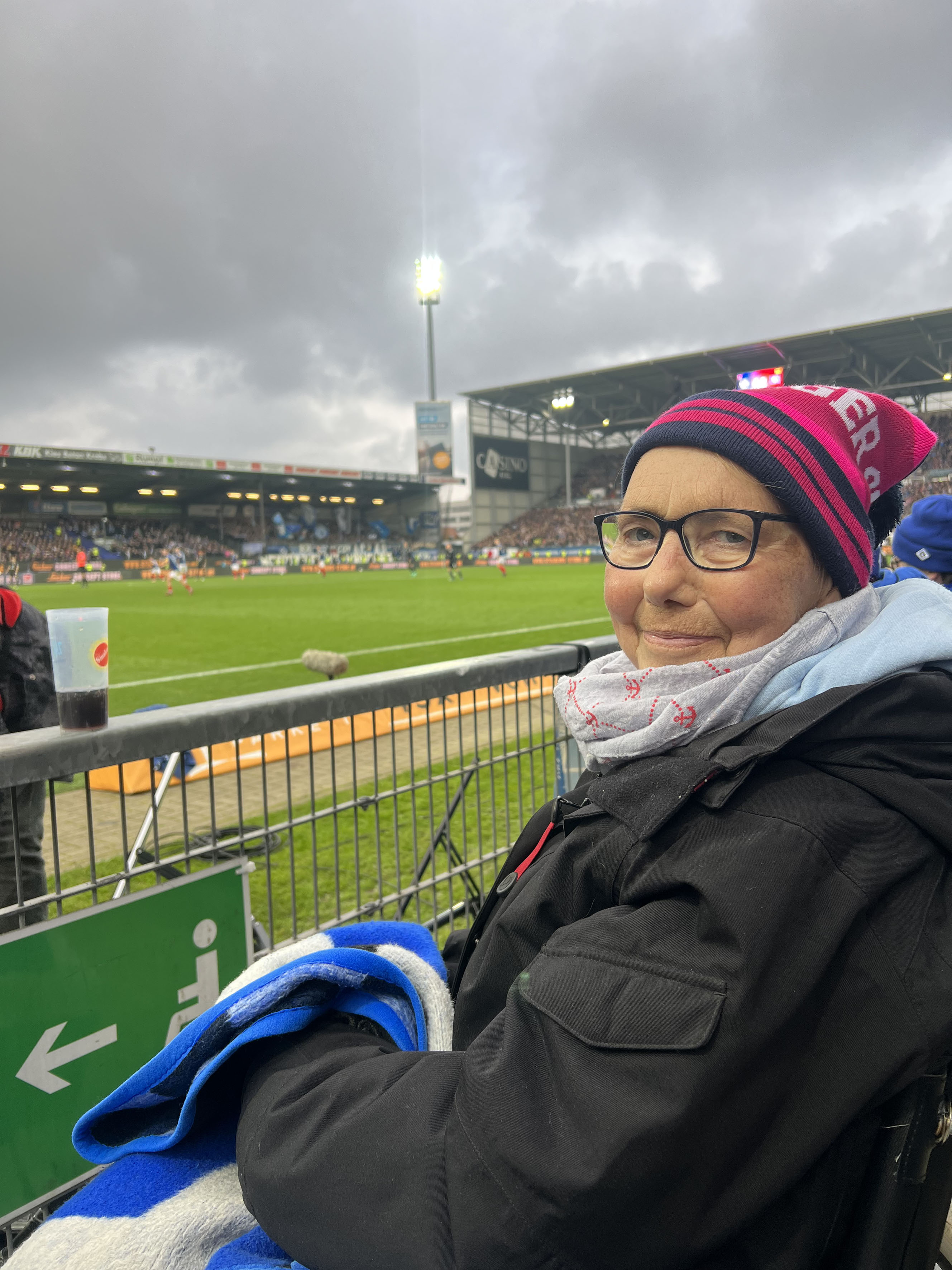 Conny fieberte natürlich für den Hamburger SV mit, der allerdings bis zur 57. Minute zwei Tore kassieren musste. Doch das Spiel wendete sich und der Hamburger SV kämpfte sich auf ein 2:2 zurück. Gestärkt mit Kaffee und Bratwurst feuerte Conny den HSV weiterhin an, aber leider half es nicht und so gewannen die Kieler Störche am Ende mit 4:2.