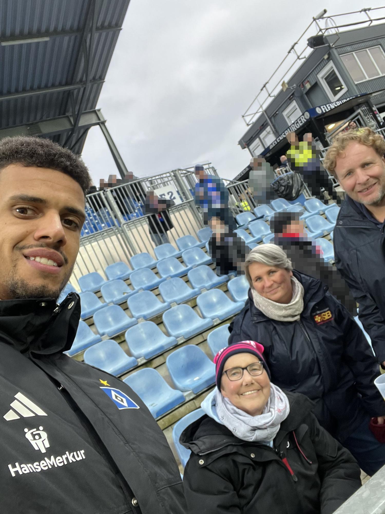 Der HSV-Profi Robert Glatzel ließ es sich trotzdem nicht nehmen, Conny an der Stadionbande zu besuchen und eigenhändig ein Selfie zur Erinnerung zu machen. Die Niederlage des Hamburger SV hat Conny nach dem liebevollen Empfang im Hospiz in Rendsburg schnell vergessen. Wir verabschiedeten uns von Conny und Mella mit einem Abschiedsfoto.