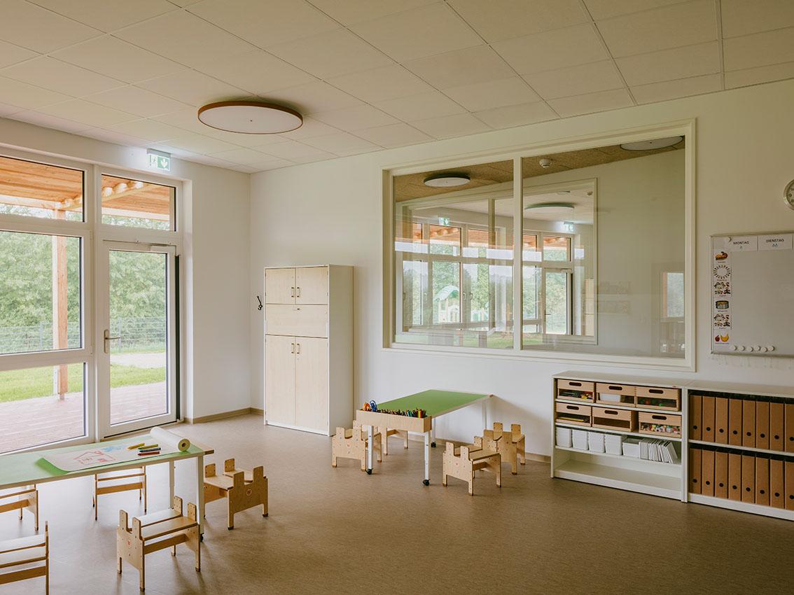 Die ASB Kita Bachlinge öffnete am 01.09.2022 ihre Pforten. Die vom Architekten Jan Braker designte Kita fügt sich futuristisch in die naturbelassene Umgebung ein und glänzt mit modernster Technik, kombiniert mit nachhaltiger Holzbauweise.
