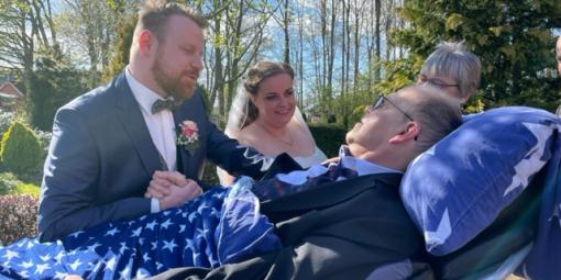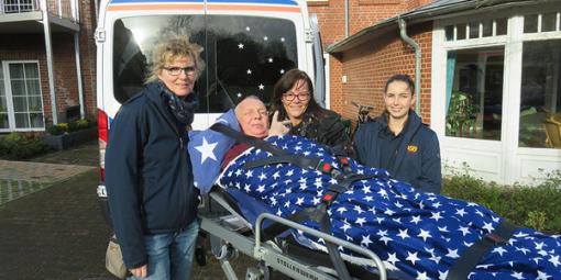 Sie hatten bereits alle Hoffnung aufgegeben, die Hochzeit ihres Sohnes mitfeiern sein zu können. Ganz nebenbei erzählte die Ehefrau von Herrn S. dem Palliativteam der Westküstenkliniken Heide, wie gern sie doch bei dieser Feier dabei gewesen wären. Zu diesem Team gehört auch Finn, der keine Zeit verlor und der Familie vom Wünschewagen erzählte.