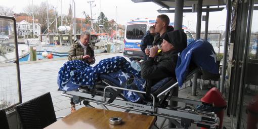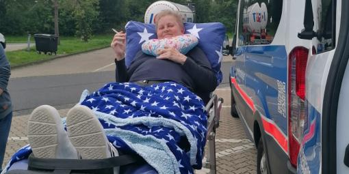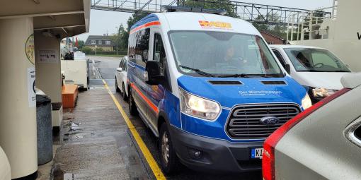 Herr P. wollte noch einmal auf dem Campingplatz in Wisch Familie und Freunde treffen. Unsere Wunscherfüller Helmut Hollstein und Ute Uhrbrook holten ihren sehr geschwächten Fahrgast mitsamt Palliativschwester Johanna aus dem Uniklinikum Kiel ab, und los ging die Fahrt zum 28 km entfernten Campingplatz Heidkoppel.