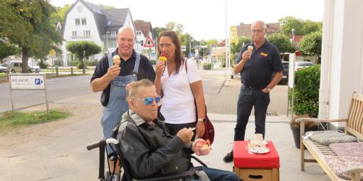 Viele schöne Erinnerungen verbindet Herr E. mit der Ostsee. Am 1. August haben wir ihm seinen Wunsch, auf der Promenade in Schilksee noch einmal ein leckeres Fischbrötchen zu essen und aufs Wasser zu schauen, erfüllt.